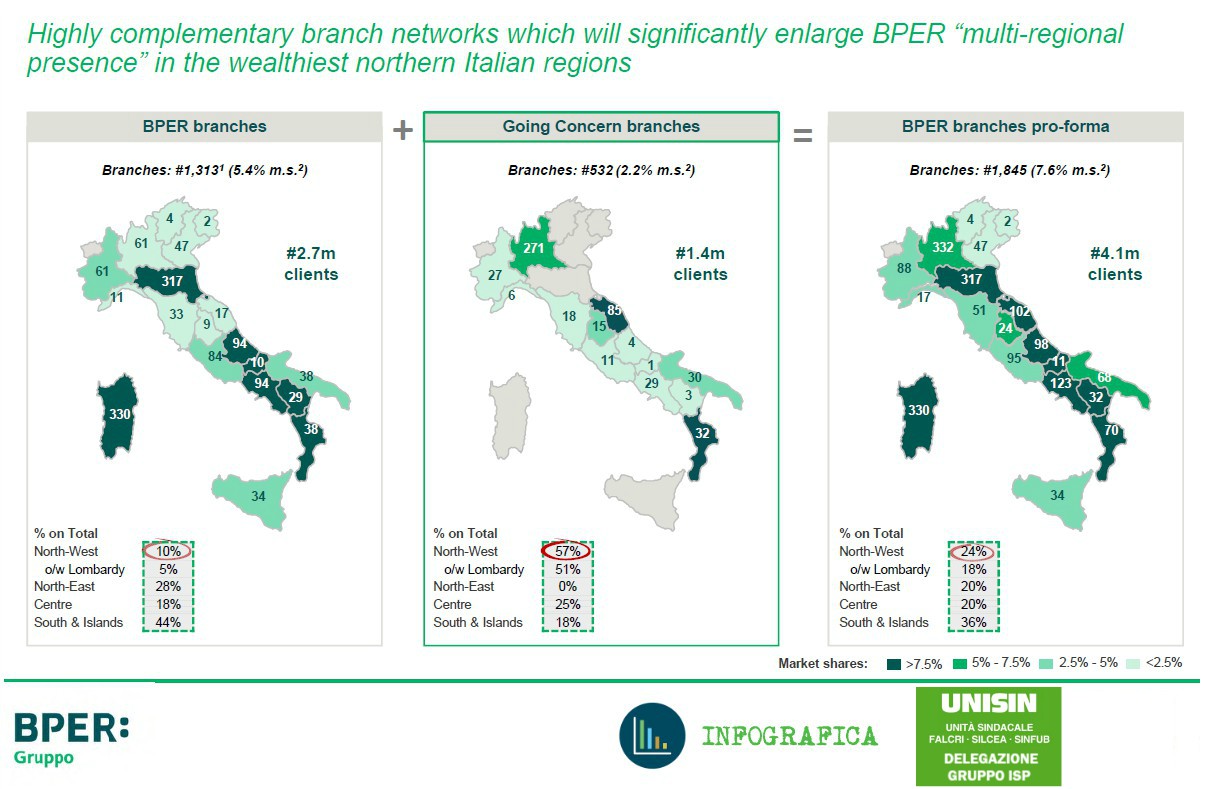 Highly complementary branch networks which will significantly enlarge BPER multi-regional presence in the wealthiest northern Italian regions (Filiali altamente complementari che amplieranno significativamente la presenza di BPER nelle regioni più ricche del nord Italia). Se non vedi bene la slide CLICCA QUI