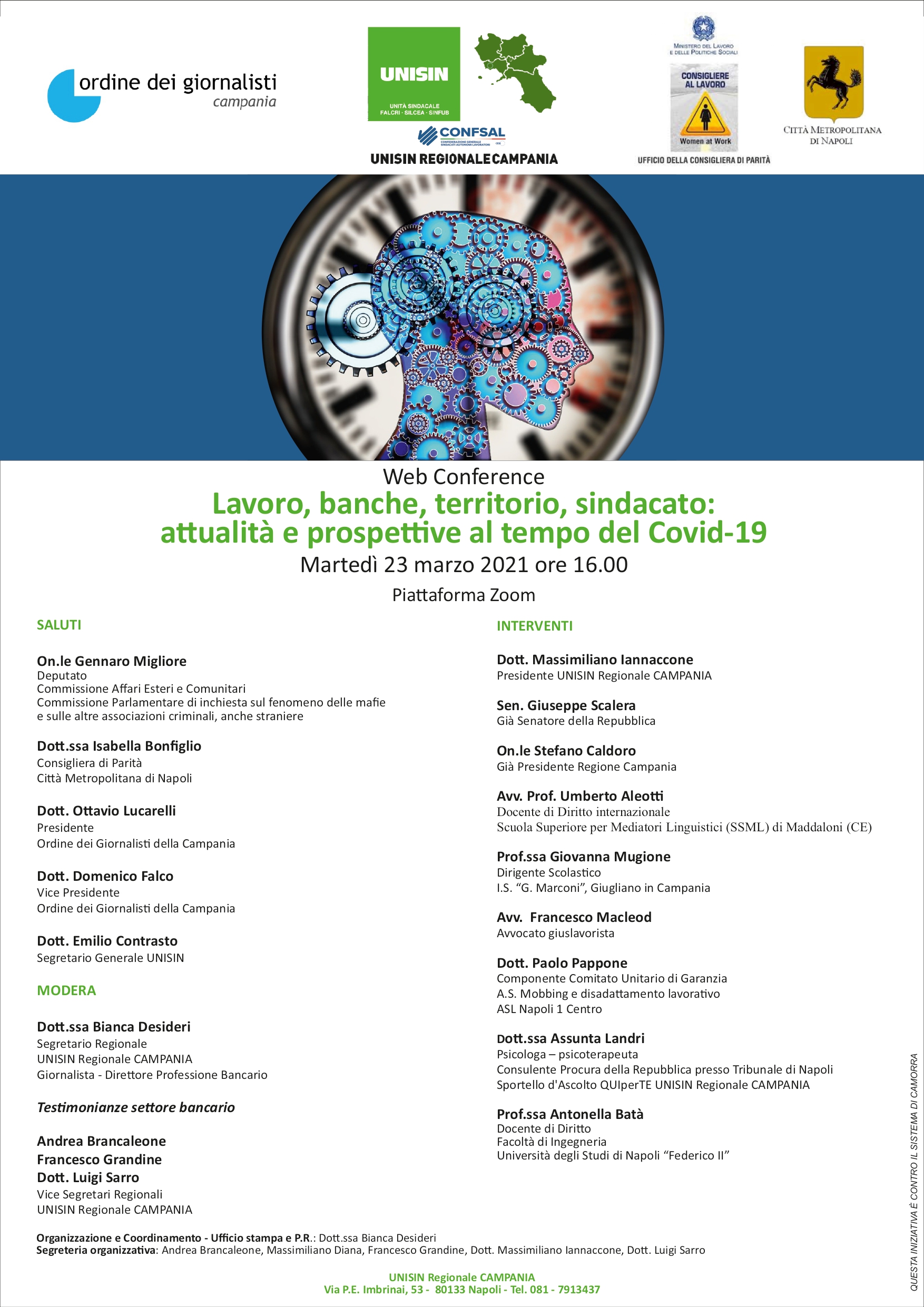 Home Comunicati Comunicati 2021 Lavoro, banche, territorio, sindacato: attualità e prospettive al tempo del Covid-19 Lavoro, banche, territorio, sindacato: attualità e prospettive al tempo del Covid-19 19 Marzo 2021 FacebookTwitterPinterestWhatsAppLinkedinEmailTelegramViber SCARICA LA LOCANDINA IN PDF